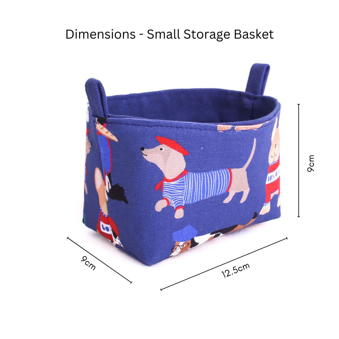 Small storage basket with dog pattern and dimensions
