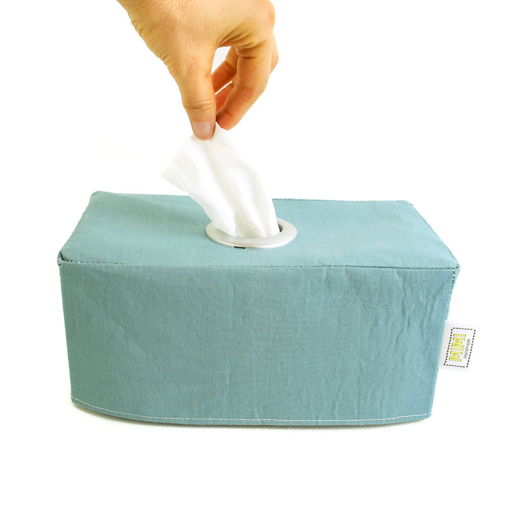 Give your box of tissues a fresh and sophisticated look with this teal green tissue box cover.